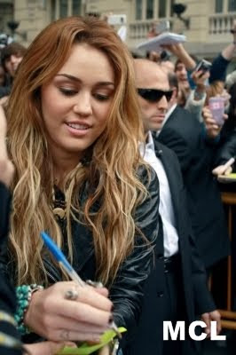 На тази снимка направена от фен Майли подписва автографи в Мадрид,Испания.